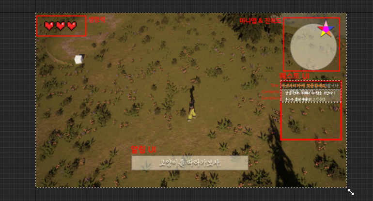- 1번 사진의 구조로 하되 2번사진의 틀로 퀘스트UI를 만들 것으로 결론