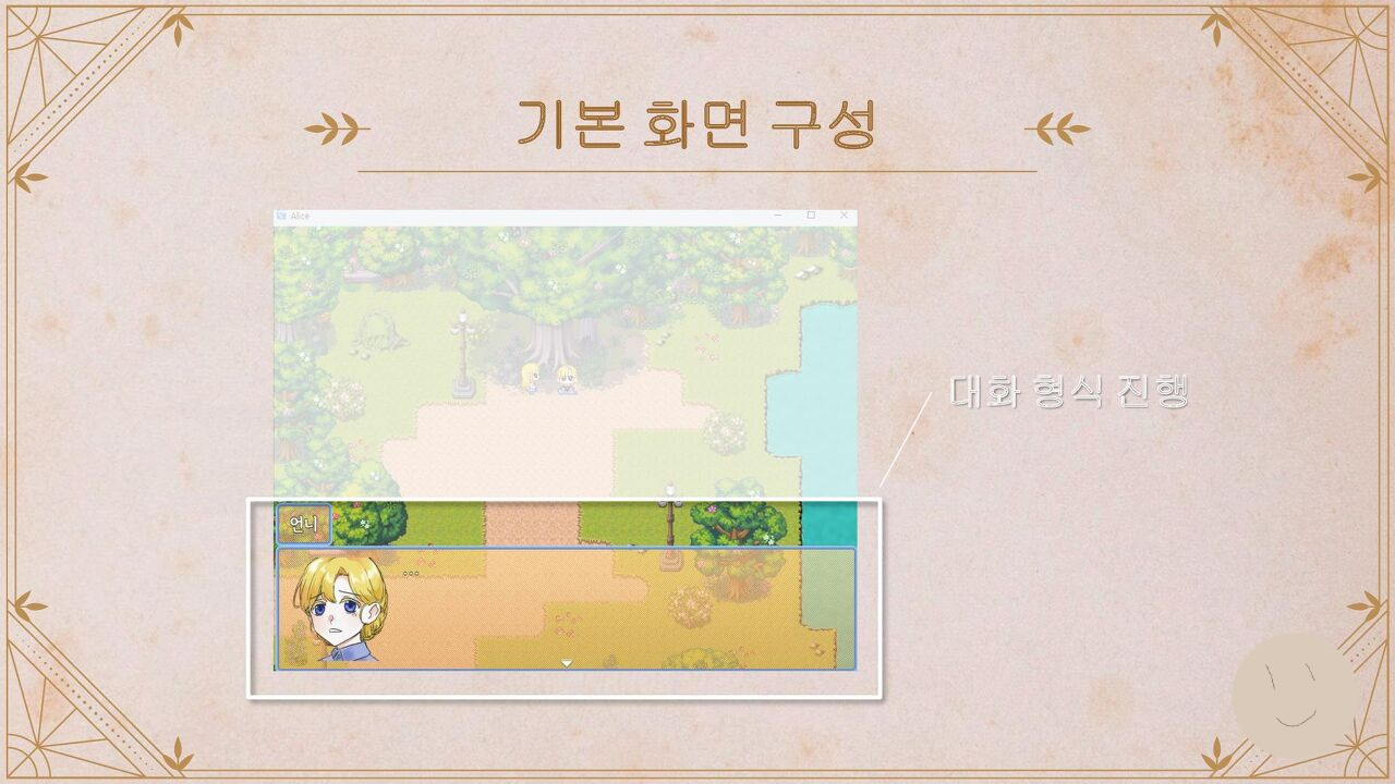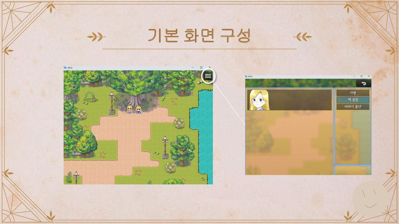 맛보기: “토끼를 쫒다가 토끼굴로 떨어진 앨리스. 밖으로 다시 나가기 위해선 여왕을 만나야 한다는 토끼의 설명을 듣고 이상한 세계를 탐험하며 왕궁에 도착하게 되는데…” 아마도 스토리형
